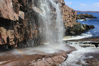 Easter Monday in St John's was once again sunny and warm, 11C, so I picked up my trails map and headed out about 30 minutes to La Manche provincial park where there is a walking route down to an abandoned village. La Manche means, the sleeve. It makes sense when you see the geology of the place.What a pretty, pretty place to live, though winter must be a different story. The bridge across the gorge must be a good 40ft about the water and it was washed away once storm and had to be rebuilt. The trail was not much used south of La Manche and I found myself walking in mud with only moose scat and prints ahead of me. I started to get myself a bit tingly closed in the thick woods, because the radio has started reporting moose sighting by the roads and we'd seen caribou 'round the bay'. I heard a scrabble of branches and stopped in my tracks, just as a tiny squirrel ran across in front of me. Hmmmm, think I was letting myself be a little paranoid.